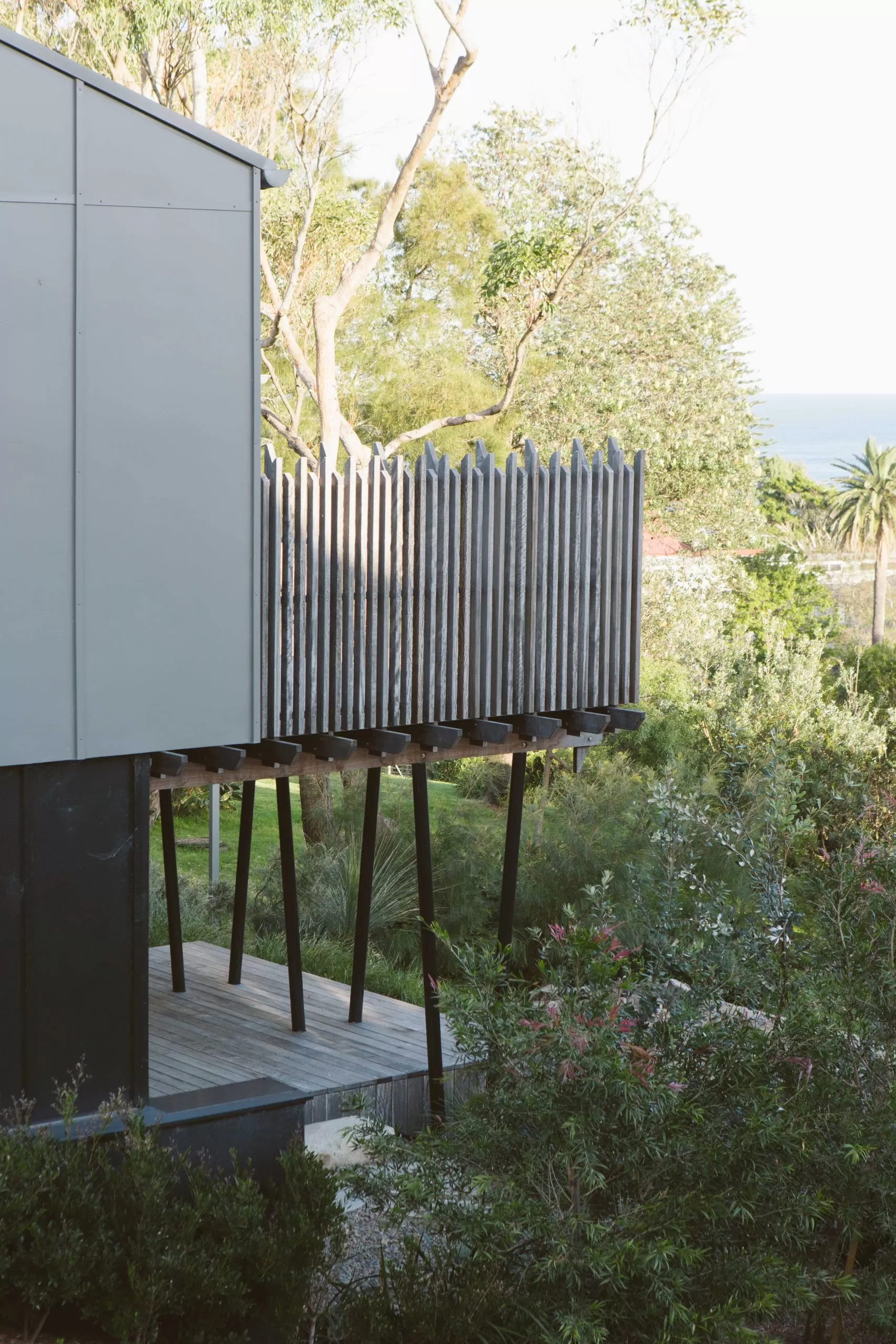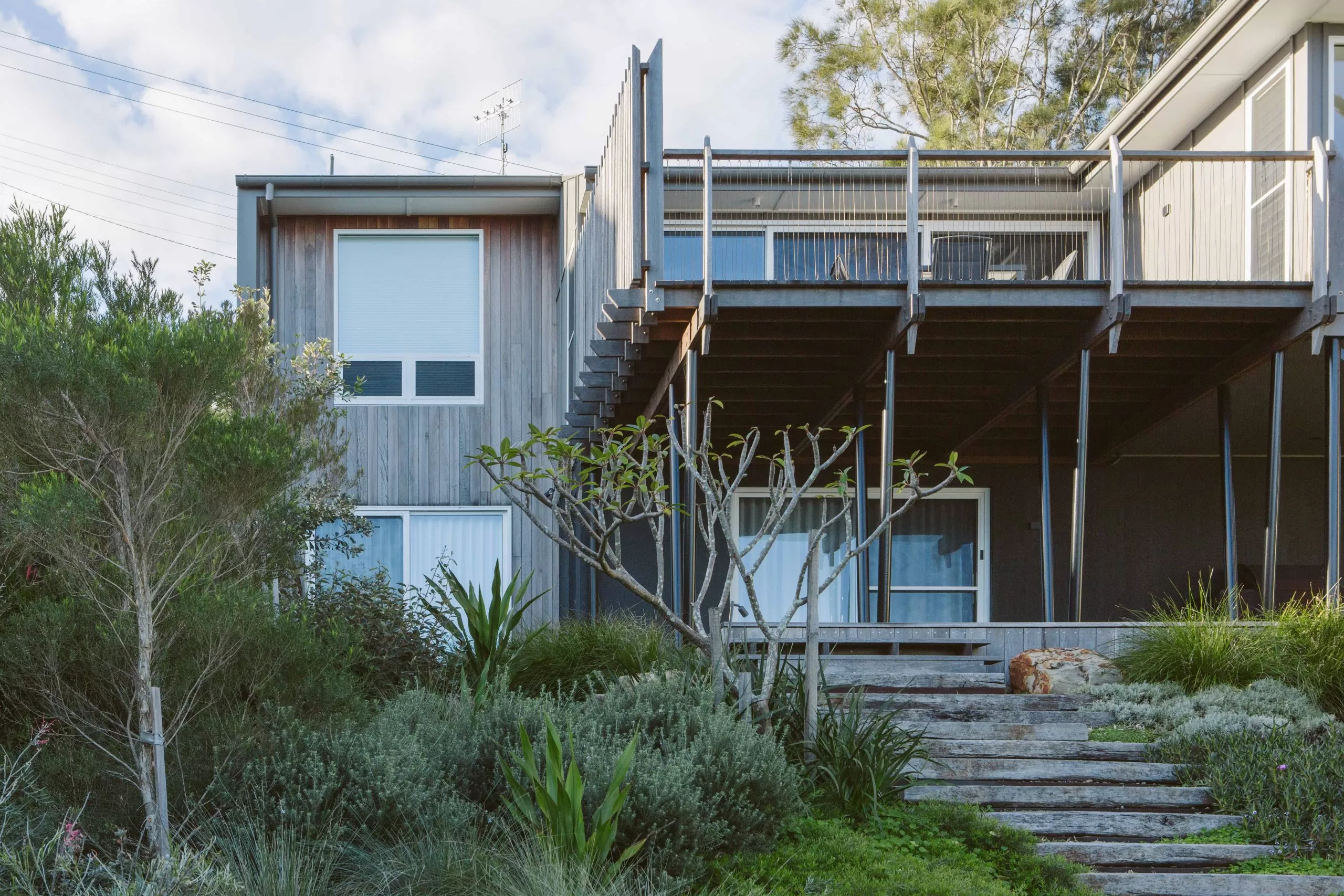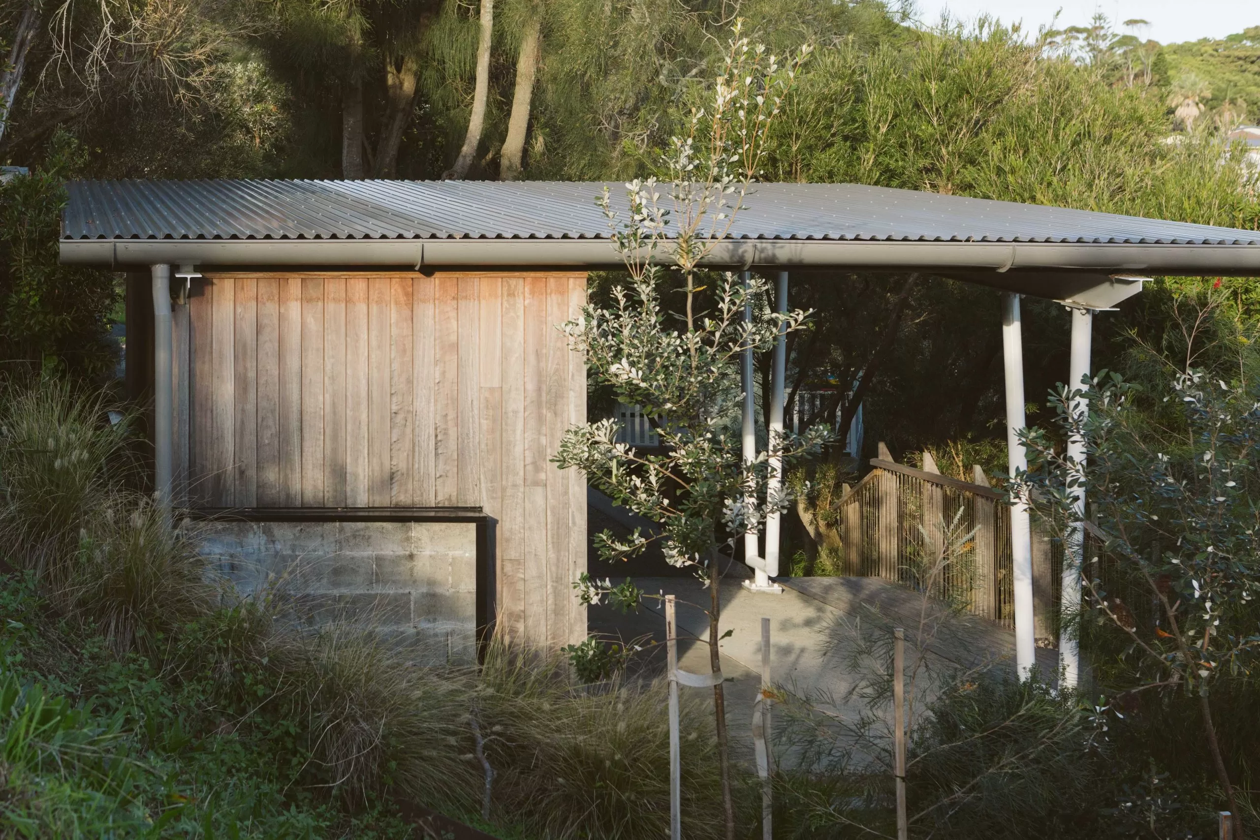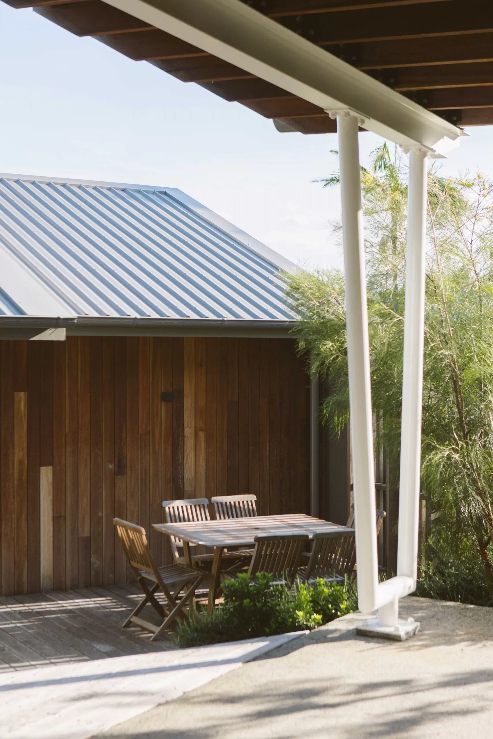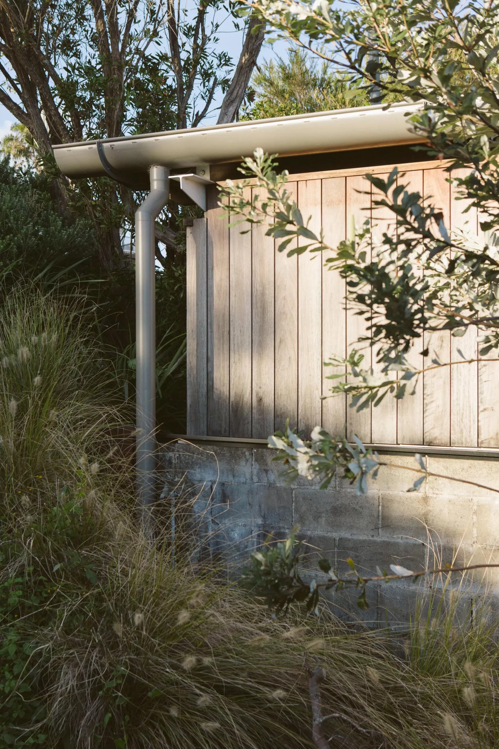 Sitting low in the gully of Gerroa, this alterations and addition’s project settles within the surrounding landscape. The project emerges from its surrounding context of the coastal beach house. The view from the streetscape sees the new addition carport under the shade of the existing Casuarina. Hardwood cladding silvers in the afternoon sun and the houses breathes with salty Gerroa air.